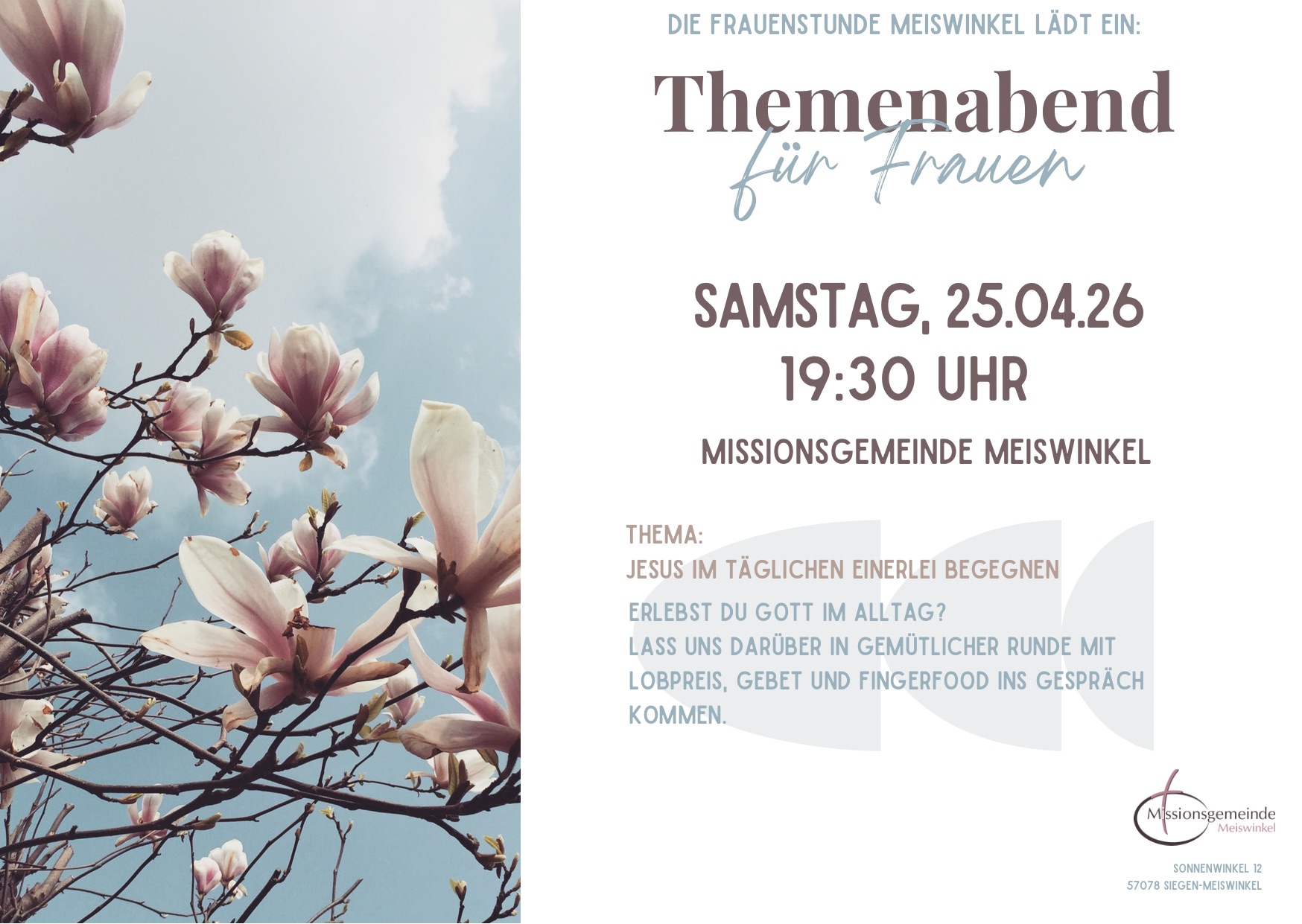 Lerne neue Leute kennen und verbringe Zeit mit Freunden und Familie. Du bist herzlich eingeladen! Wir freuen uns auf Dich!